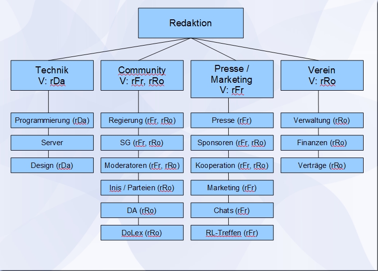 | 23:12, 15. Mär. 2006 | Fehler beim Erstellen des Vorschaubildes: Die Miniaturansicht konnte nicht am vorgesehenen Ort gespeichert werden | 1.212 × 641 (83 KB) | NetReaper (Diskussion | Beiträge) | Redaktion Organigramm |