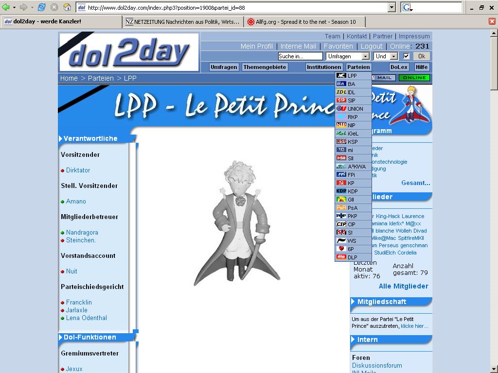 | aktuell | 19:18, 27. Nov. 2006 | Fehler beim Erstellen des Vorschaubildes: Die Miniaturansicht konnte nicht am vorgesehenen Ort gespeichert werden | 1.024 × 768 (116 KB) | Amano (Diskussion | Beiträge) | LPP Platz 1 des Parteiranking |