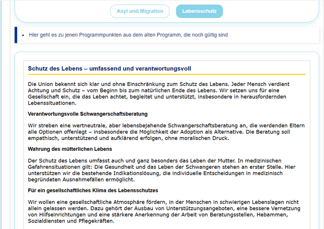 Wie gefällt Dir der neue Programmpunkt der Union zum Thema Lebensschutz? |